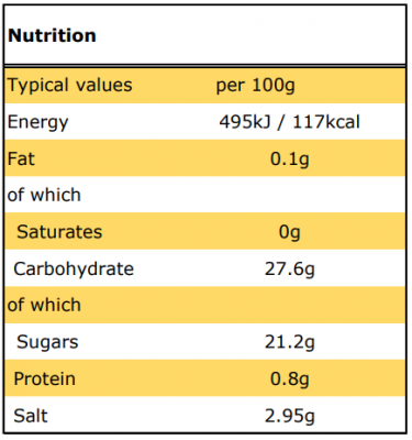 Ingredients: Water, Tomato Paste, Sugar, Dextrose, Modified Maize Starch, Salt, Spirit Vinegar Stabiliser (Xanthan Gum), Preservative (Potassium Sorbate), Paprika, Onion Powder, Garlic Powder, Spice And Herb Extracts (contains Celery).